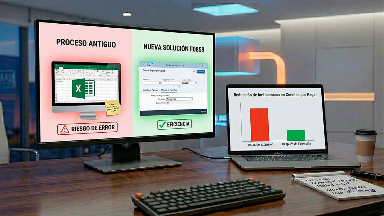 La necesidad de esta extensión surgió de una brecha concreta entre lo que la aplicación estándar ofrece y lo que el negocio requiere. El flujo estándar de Create Supplier Invoice gestiona las condiciones de pago desde la perspectiva contable del sistema, pero no registra el método de pago real acordado comercialmente con el proveedor. Esta distinción, que puede parecer menor desde una perspectiva técnica, tiene implicaciones directas en la operación diaria: sin un campo que registre si el pago se hará por transferencia, cheque o letra de cambio, el equipo de cuentas por pagar debe gestionar esa información fuera del sistema, con las ineficiencias y los riesgos de error que eso conlleva.