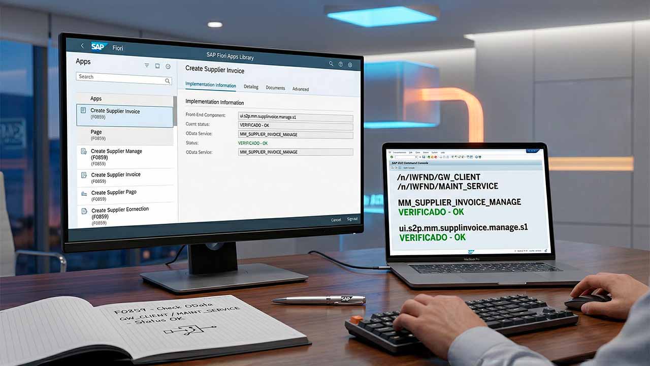 Antes de iniciar el desarrollo de cualquier Extension Project, es indispensable verificar que la aplicación estándar y su servicio OData están correctamente configurados en el sistema. Esta verificación evita errores en etapas posteriores que pueden ser difíciles de diagnosticar. Toda la información técnica necesaria para estas verificaciones se obtiene de la SAP Fiori Apps Library, el catálogo oficial donde SAP documenta cada aplicación Fiori con sus requisitos de instalación y configuración.