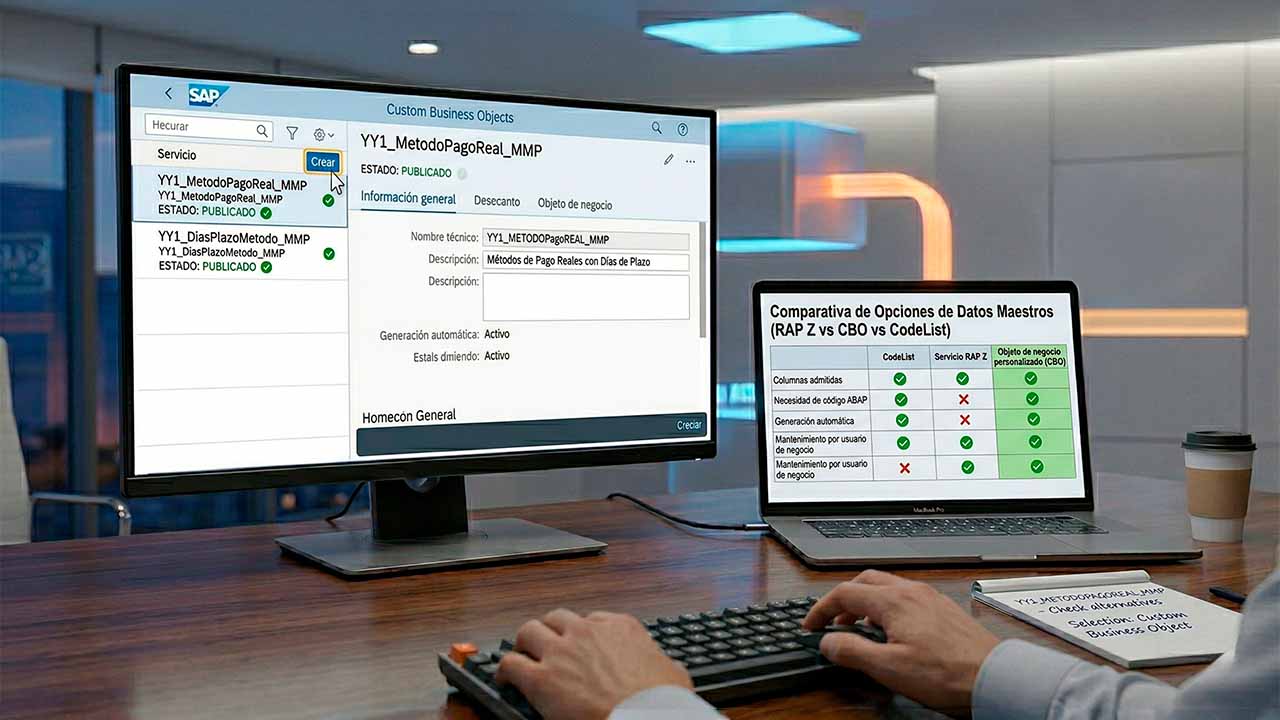 El valor de este enfoque no reside únicamente en la solución técnica, sino en lo que garantiza a largo plazo. Cada Support Package y Feature Pack que SAP libere para S/4HANA se aplicará sin conflicto, porque la extensión opera en una capa que el sistema reconoce y respeta. El key user puede mantener los métodos de pago y sus plazos desde la interfaz Fiori sin depender del equipo de desarrollo. El desarrollador puede evolucionar la extensión (agregar validaciones, nuevos campos, lógica adicional) sin temor a romper el flujo estándar. Y el equipo de base puede transportar la solución completa entre sistemas (desarrollo, calidad, producción) con las herramientas habituales de SAP, porque tanto los Custom Fields como el CBO y el Extension Project son objetos transportables.