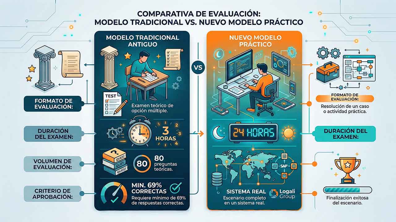 El paso de un examen de 80 preguntas a una prueba práctica de 24 horas es una excelente noticia para el ecosistema SAP. Garantiza que los profesionales certificados realmente saben “tocar el sistema”. Una vez que hayas completado todos los laboratorios prácticos y obtenido tus insignias en nuestros másteres de Logali Group, actualizados en este nuevo modelo de evaluación SAP, estarás verdaderamente listo para programar tu examen y demostrar tus habilidades en el mundo real.